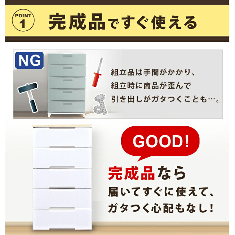 Yシャツなら1段に4枚収納でピッタリ! リビングや寝室の収納にぴったりの木天板付きのおしゃれなチェストです♪
